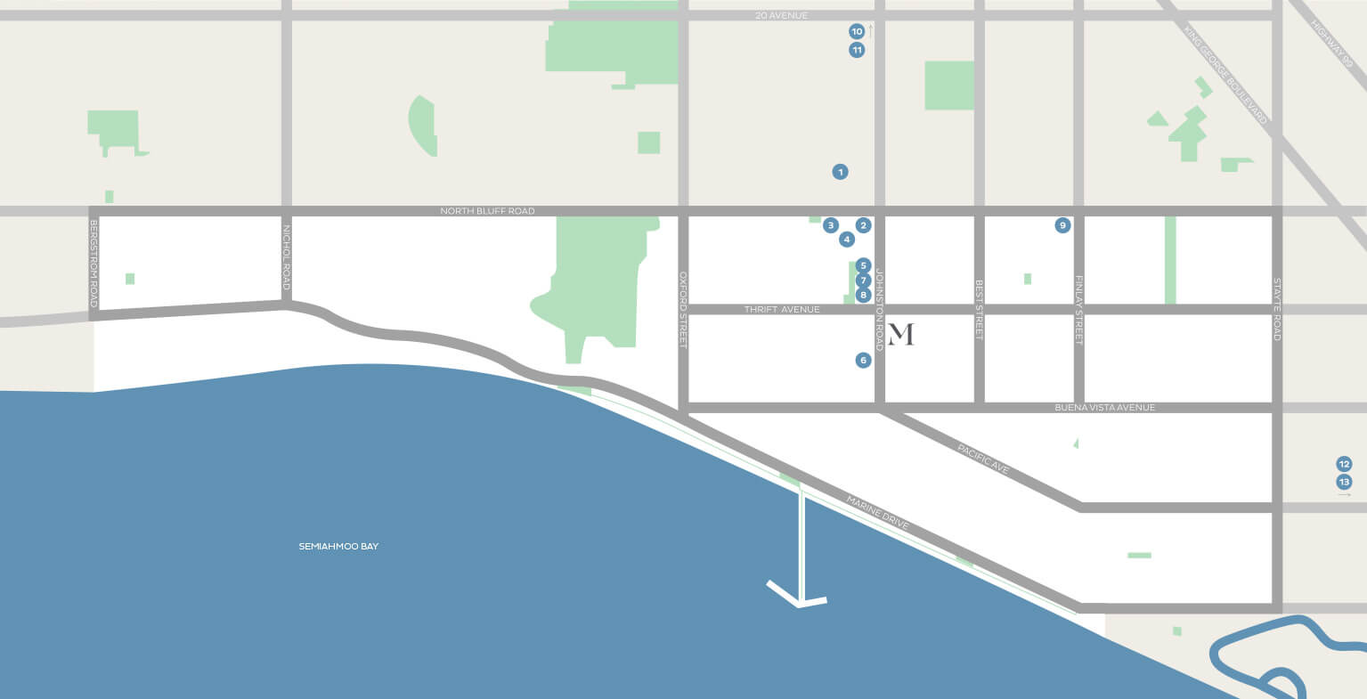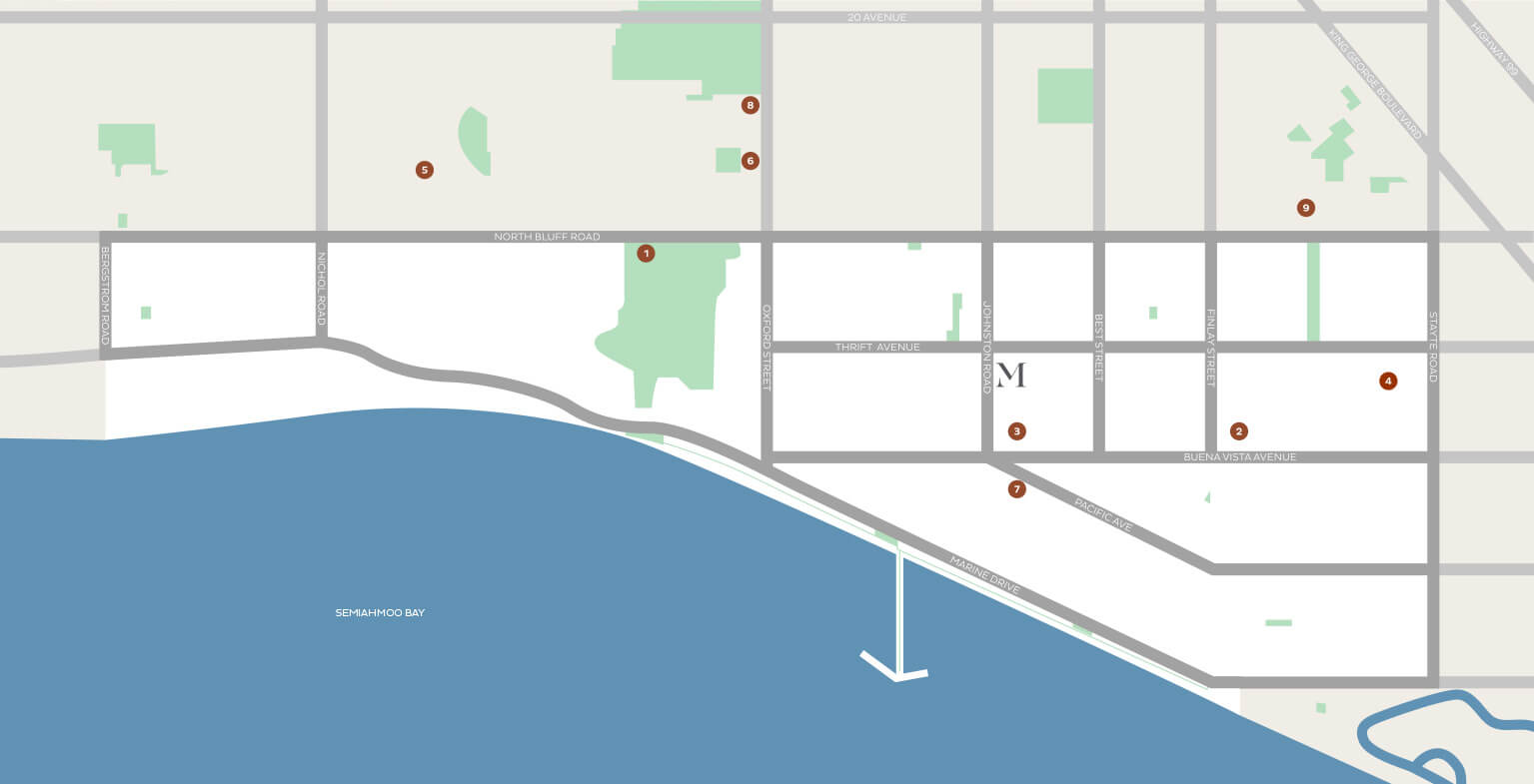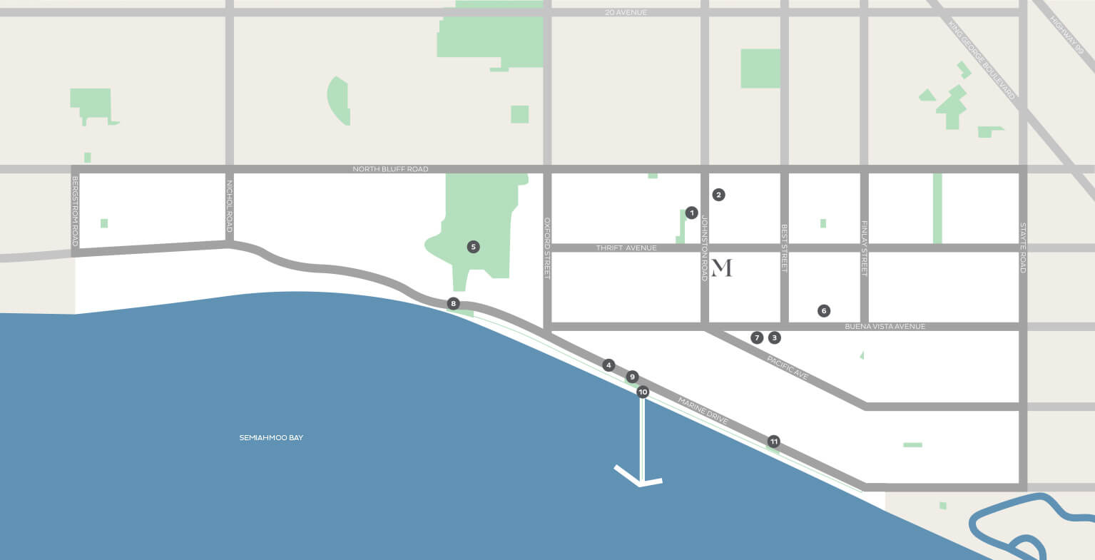 Just a short bike ride away, you will find yourself surfside, enjoying the White Rock Promenade or a